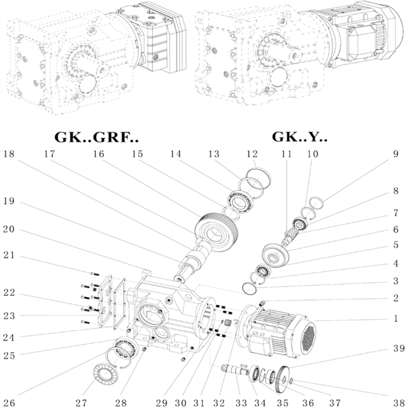 GKF..是B5法蘭安裝斜齒輪-傘齒輪減速機